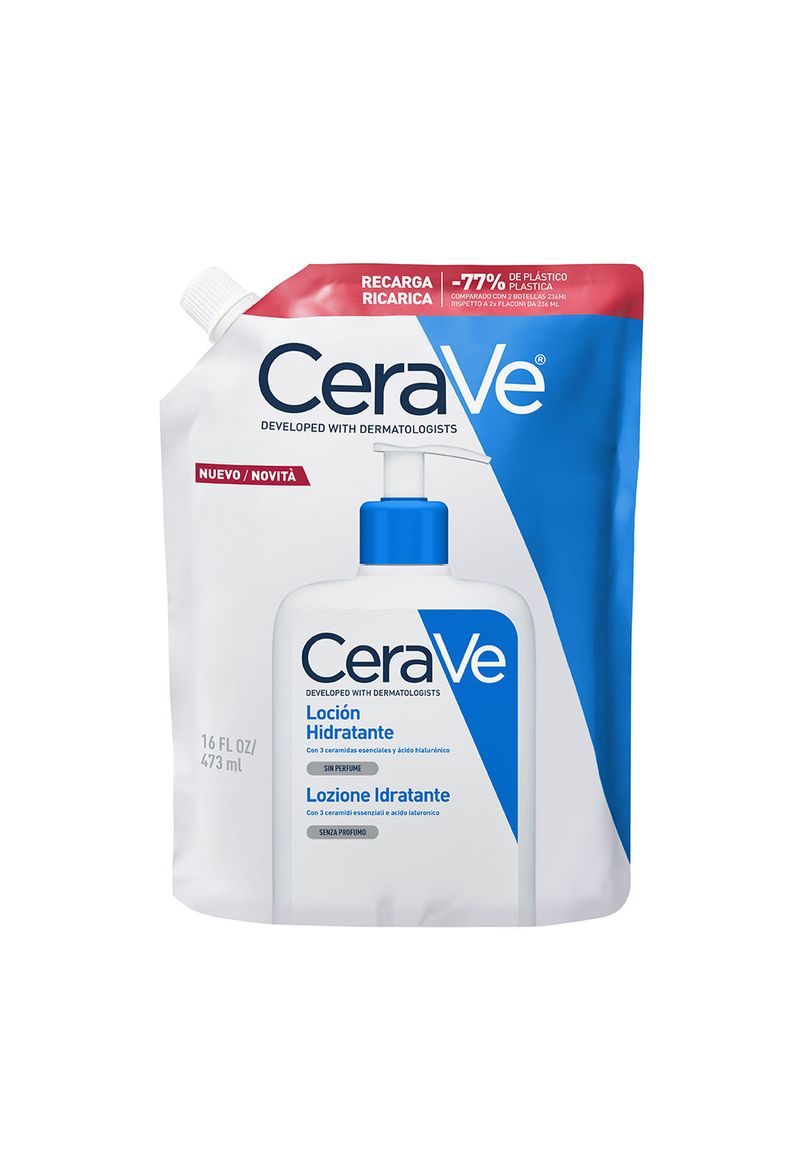 Cerave Refill Loción Hidratante para uso diario que ayuda a hidratar y a restaurar la barrera protectora de la piel. Deja una sensación de confort y suavidad, mientras que es ligera y no contiene aceites. Formulada con 3 ceramidas esenciales y Ácido Hialurónico, también cuenta con la tecnología patentada MVE que brinda una hidratación durante 24 horas. Es no comedogénica, es decir, no obstruye los poros. Aceptada por la Asociación Nacional del eczema estadounidense.
