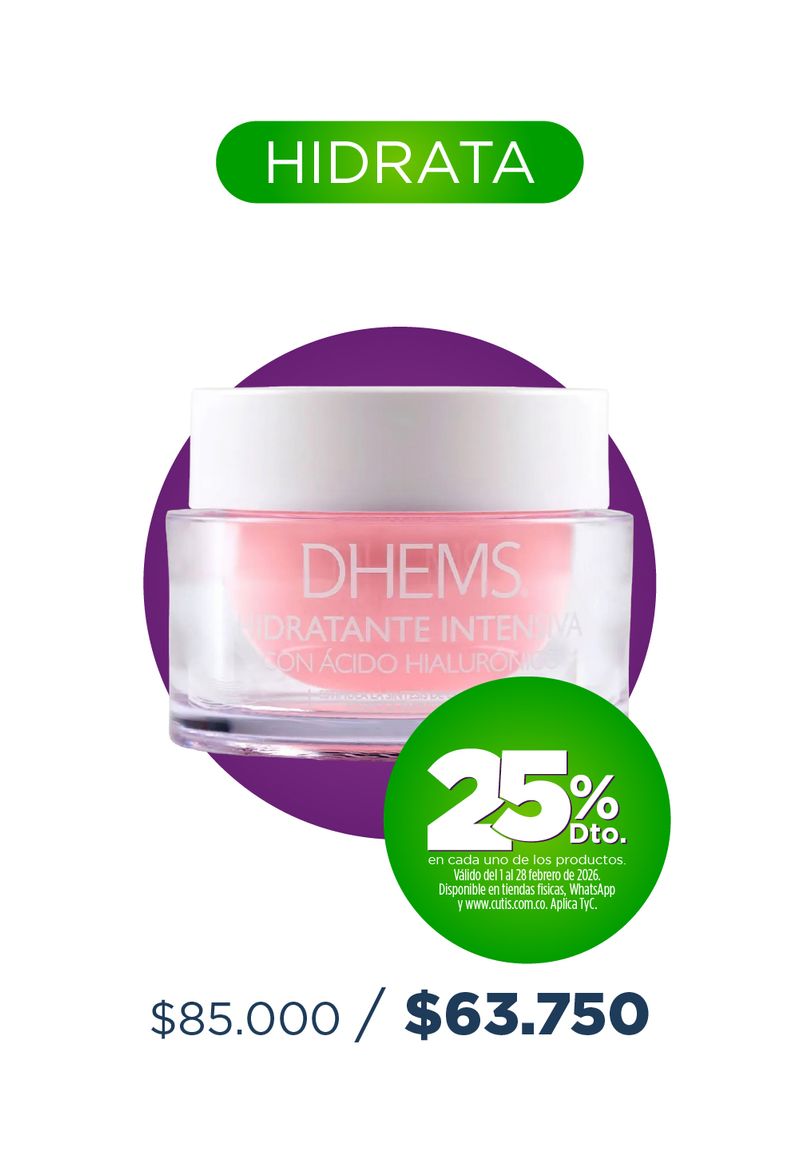 Dhems crema gel estimula la síntesis de colágeno, elastina y ácido hialurónico, ayudando a mantener la piel más firme y elástica, mientras proporciona hidratación profunda y de larga duración. Refuerza la barrera natural de la piel, favoreciendo la retención de agua y protegiéndola frente a los daños ambientales. Gracias a su fórmula antioxidante, enriquecida con ácido hialurónico, vitaminas E y B5, y Fucogel, deja la piel suave, fresca y visiblemente más saludable.