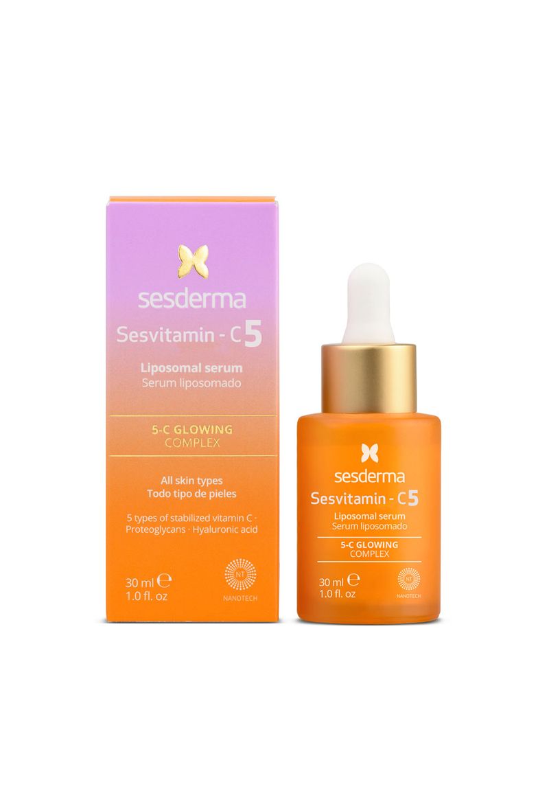 Sesvitamin C-5 Liposomal Serum con 5 tipos de vitamina C, este serum proporciona un extra de luminosidad a tu piel y ayuda a frenar los signos de la edad. Además, sus activos antienvejecimiento, como la centella asiática, el ácido hialurónico y los proteoglicanos, junto con el complejo tensor inmediato, proporcionan una piel mucho más elástica y flexible con un efecto inmediato y a largo plazo.